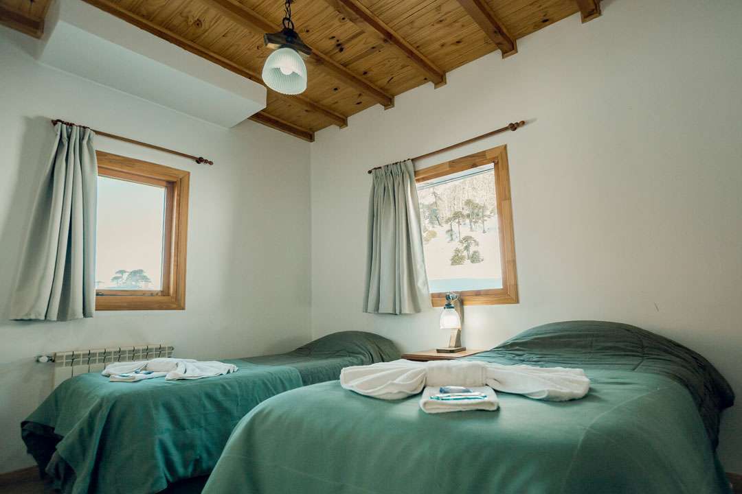 Cabañas con capacidad para 4/5 personas. Amplitud y confort, imponente vista al bosque de araucarias. Cuentan con servicio de mucama y desayuno opcional. Servicio de acceso y egreso de pasajeros y equipaje a las cabañas en caso de excesiva nieve, no se permiten mascotas.
